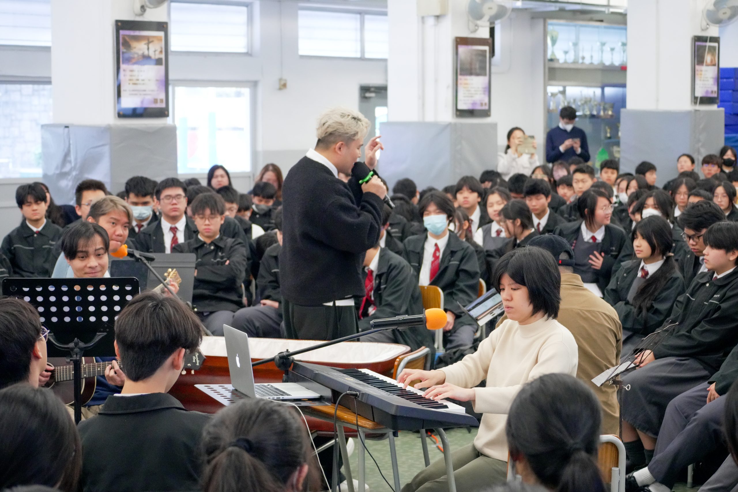 全方位學習節 本校創造多元的學習環境,積極鼓勵學生參與校內校外的活動及比賽,啟發學生潛能及創意。透過不同的活動體驗,加強學生自信心,提升學生成就感,讓學生循序漸進建立目標,規劃人生。本校特別在上課時間表內星期三下午加入「全方位學習節」,透過不同形式及不同範疇的活動,藉此豐富學生的多元學習經歷,以發展學生多元才能並加以培訓。 四社 聯課活動委員會 聯課活動 全方位學習節活動舉偶 我們都在練習人生音樂會本校於全方位學習節舉辦「我們都在練習人生」音樂會,旨在透過本地廣東話歌曲,引導學生認識本土文化,並從音樂中尋找心靈慰藉與人生啟發。音樂會當中有表演環節是由本校扶輪BAND隊傾力演出,這可提供平台讓嘉賓深入了解本校音樂教育成果及學生的藝術潛能。活動不僅讓學生在繁忙學業中獲得情感釋放,亦鼓勵同學勇敢追夢,以音樂為伴,練習人生每一步。整場音樂會氣氛溫馨動人,展現青春活力與堅持信念,讓師生與嘉賓一同感受音樂的力量與希望。 扶輪社獎助學金頒獎禮本校於全方位學習節舉行扶輪社獎助學金頒獎禮,感謝九龍西扶輪社每年慷慨撥款,支持本校推動全人教育。頒獎禮旨在表揚於學術、多元智能、服務及領袖等範疇表現卓越的學生,肯定他們的努力與成就。典禮上,扶輪社代表致辭勉勵學生持續追求卓越,回饋社會;校長亦感謝社會各界對教育的支持,鼓勵學生以獲獎為起點,繼續發揮潛能。頒獎禮不僅激勵學生奮發向上,更深化學校與社區的連結,共同培育具責任感與使命感的新一代。 中六級打氣會為鼓勵中六學生迎戰文憑試,本校特意於全方位學習節舉辦中六打氣會,凝聚全校師生力量,為考生送上祝福與支持。活動當日,禮堂洋溢熱烈氣氛,師長們以誠摯言語勉勵學生堅持到底,勇敢面對挑戰。嘉賓致辭中強調「努力不懈,定能成功」,激勵人心。中六級打氣會不僅提升考生信心,更展現師生間深厚情誼,讓中六學生感受到「你並不孤單」,在壓力中找到力量與希望,迎向人生新一頁。 生命教育暨音樂會本校於全方位學習節舉辦「生命教育暨音樂會」,以創新方式引導學生思考生命的價值與意義。活動融合音樂演出與生命課題,特別設置象徵性的棺材裝置,讓學生在濃厚氛圍中反思生死課題,學習珍惜當下與關愛他人。音樂會選用多首富哲理與情感的本地歌曲,透過旋律與歌詞觸動心靈,引發學生對人生的深層思考。嘉賓分享生命故事,鼓勵同學勇敢面對困難,活出真我。是次活動不僅提升學生的情感素養與同理心,更深化對生命教育的理解,讓他們在音樂與沉思中,學會如何活得有意義、有溫度。。 外出考察本校於全方位學習節期間,精心安排不同級別學生前往不同地點進行參觀及考察,讓學生走出課室,拓展視野,實踐多元學習理念。部份年級學生參觀科學館及歷史博物館,透過互動展品激發探索精神;其餘年級學生則前往文化機構及社區設施,進行專題研習與實地觀察,深化對社會議題的理解。活動涵蓋自然科學、人文歷史及公民教育等範疇,促進跨學科學習。師生在真實情境中交流討論,培養批判思維與合作能力。外出考察不僅豐富課堂以外的學習經驗,更鼓勵學生主動求知,將知識與生活連結,實踐「學以致用」的教育精神。 NERF GUN大激戰本校於全方位學習節期間舉辦不同多元活動,其中「NERF GUN大激戰」活動,旨在讓學生透過動感遊戲鍛鍊身體,釋放學習壓力,同時培養團隊合作精神與策略思維。活動以分組形式進行,過程中學生互相溝通、分工合作,展現高度默契與領導能力。場面緊張刺激,笑聲不絕,學生皆投入其中。活動不僅提升學生的體能與反應能力,更讓他們在遊戲中學習互信與協作,體會「勝不驕、敗不餒」的運動精神,有助促進學生身心發展,亦為學校學習生活增添活力與趣味,展現本校重視全人教育的理念。